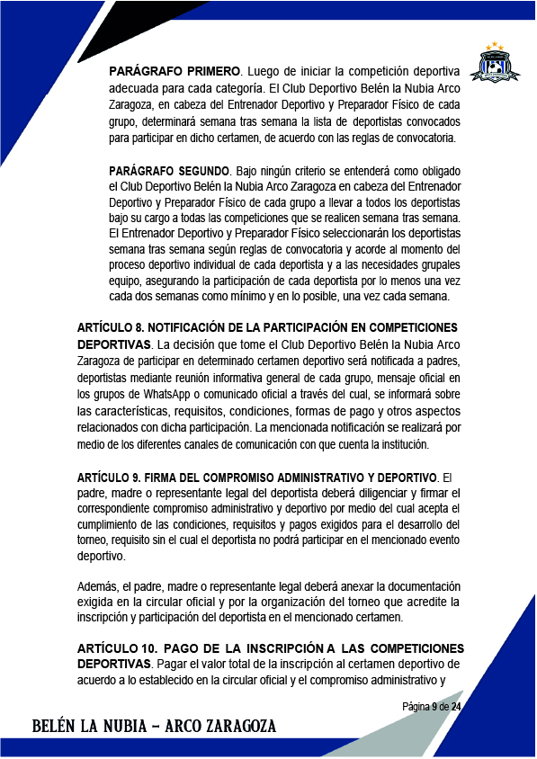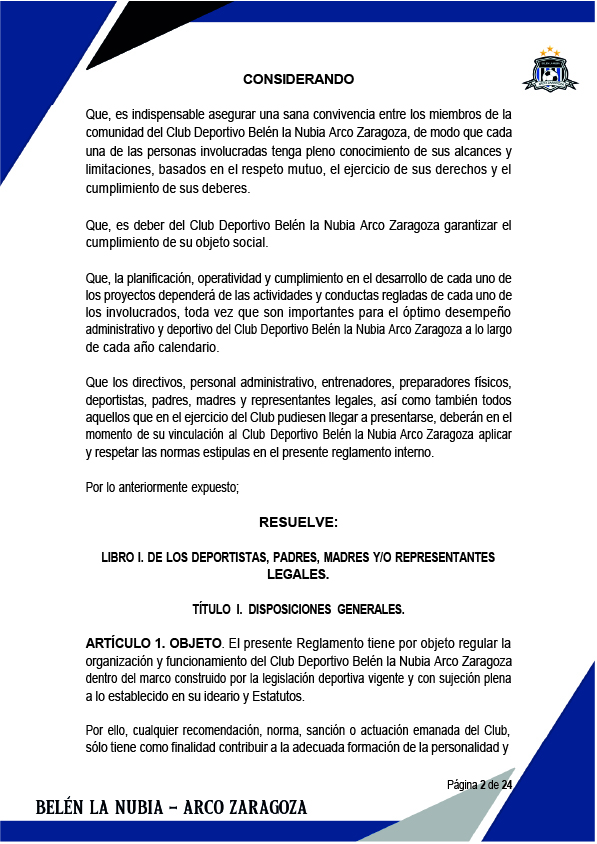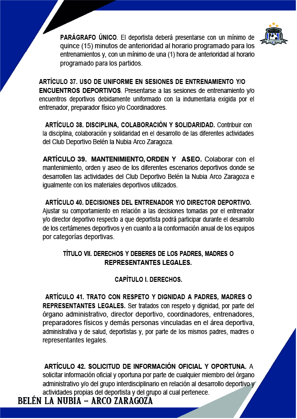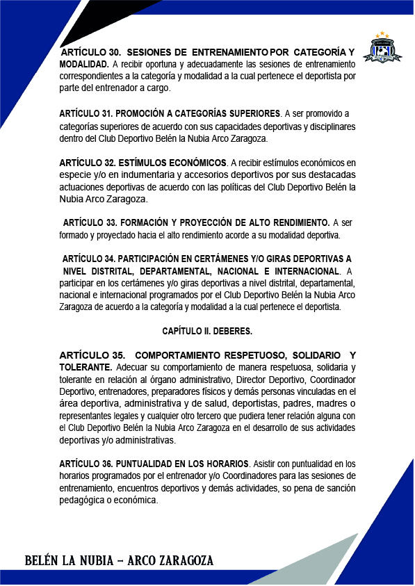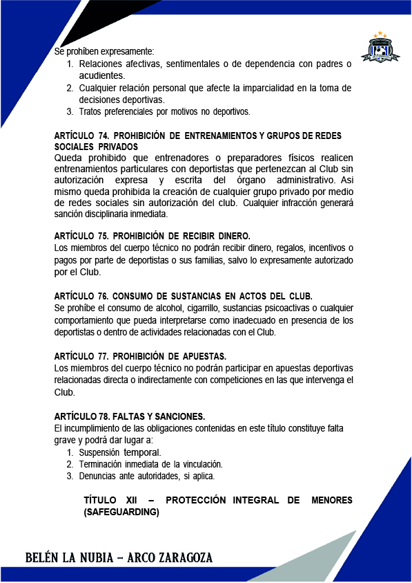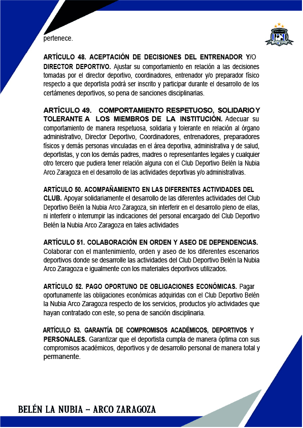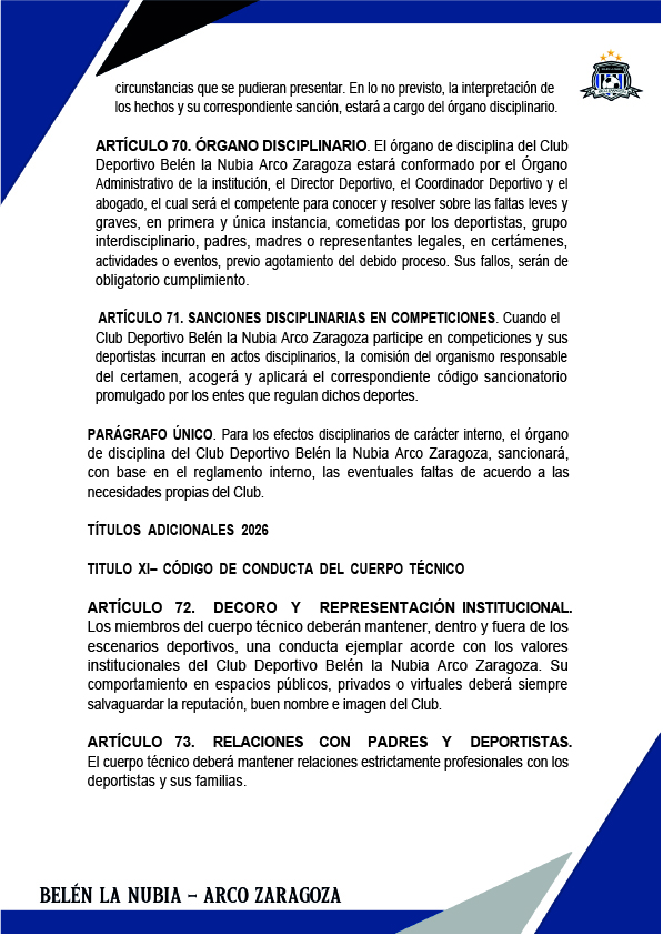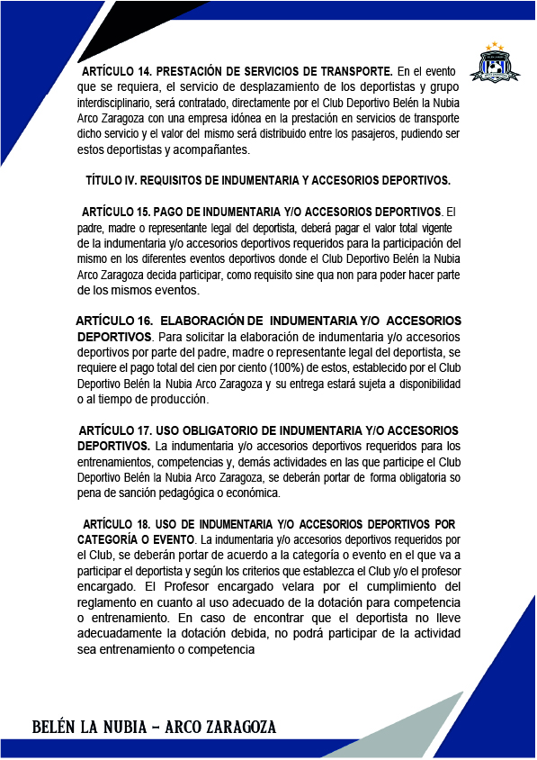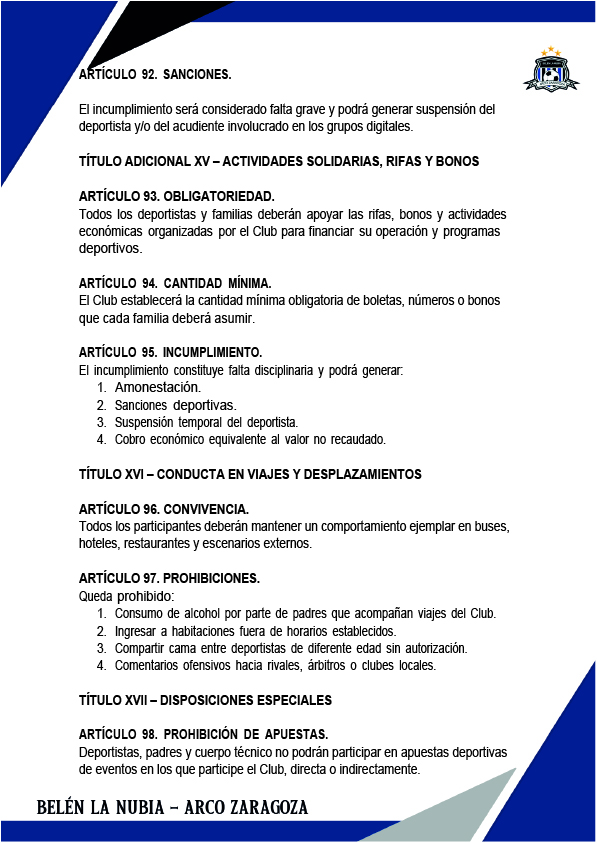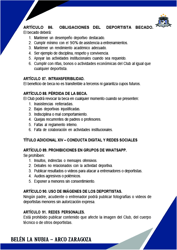 Reglamento Interno Belén La Nubia Arco Zaragoza 2026