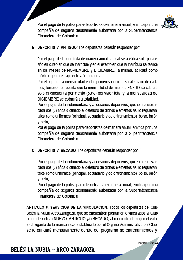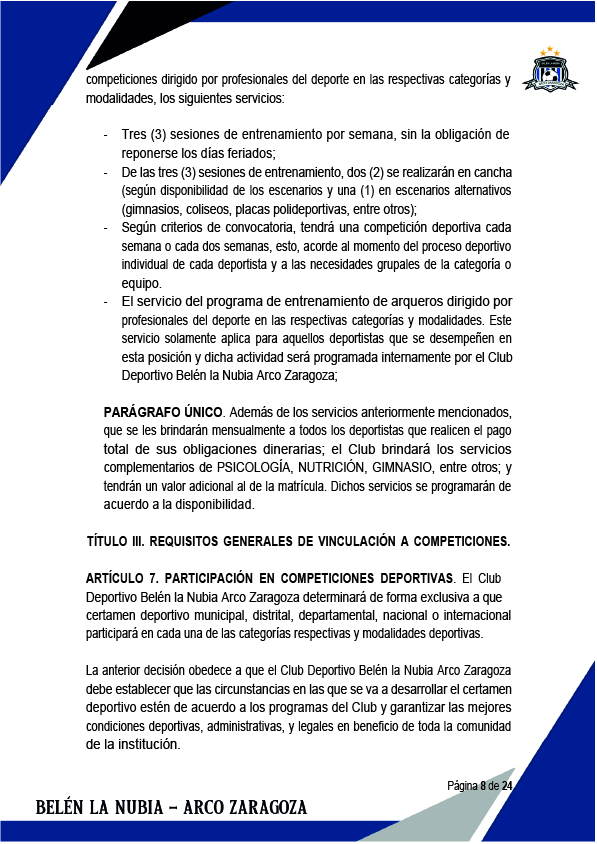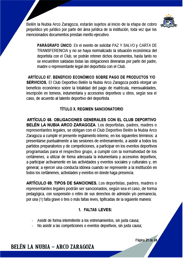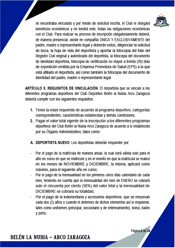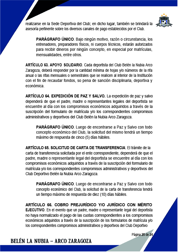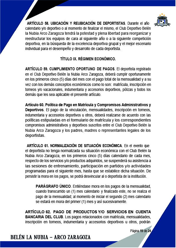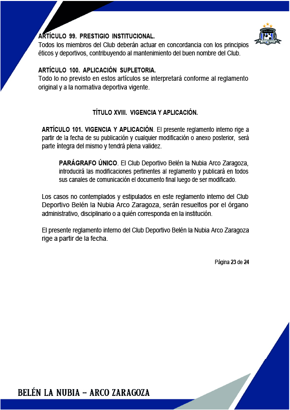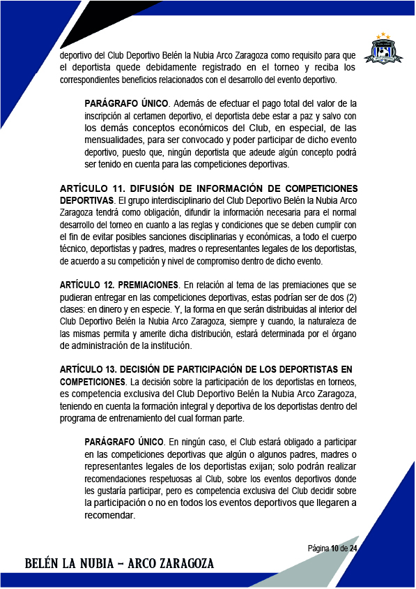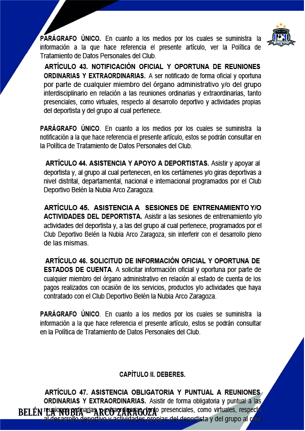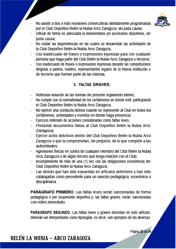 Reglamento Interno Belén La Nubia Arco Zaragoza 2026